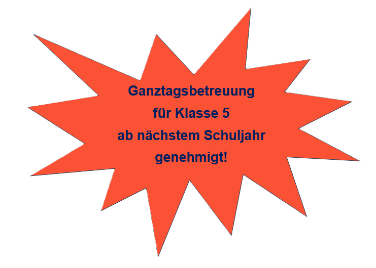 Das Kultusministerium hat uns am 5.3.2026 genehmigt, die Ganztagsbetreuung für die Klassen 5 im nächsten Schuljahr anzubieten und durchzuführen. Sollten Sie Ihr Kind also für einzelne Tage oder von montags bis donnerstags für die Ganztagsbetreuung anmelden, würde diese Betreuung folgendermaßen aussehen: