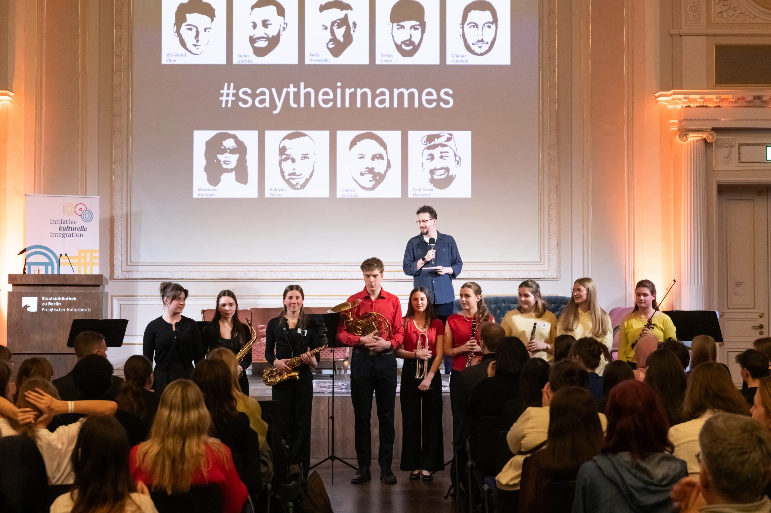 Am Beginn des Ereignisses, das uns am Ende in die Staatsbibliothek nach Berlin führen und in Kontakt mit Vertreter*innen der Initiative kulturelle Integration bringen wird, steht eine kurze Rundmail einer Kollegin an alle Deutschlehrkräfte des Staufer-Gymnasiums mit dem Hinweis auf den Wettbewerb „Schreib für Hanau!“. Im Gedenken an den schrecklichen Anschlag von Hanau am 19. Februar 2020, bei dem innerhalb von sechseinhalb Minuten neun junge Menschen mit Migrationshintergrund aus rassistischen Motiven getötet wurden, wird dieser Wettbewerb nun das vierte Jahr in Folge ausgeschrieben, um junge Menschen zur Auseinandersetzung mit Diskriminierung und jeglicher Form von gesellschaftlicher Ausgrenzung zu motivieren.
