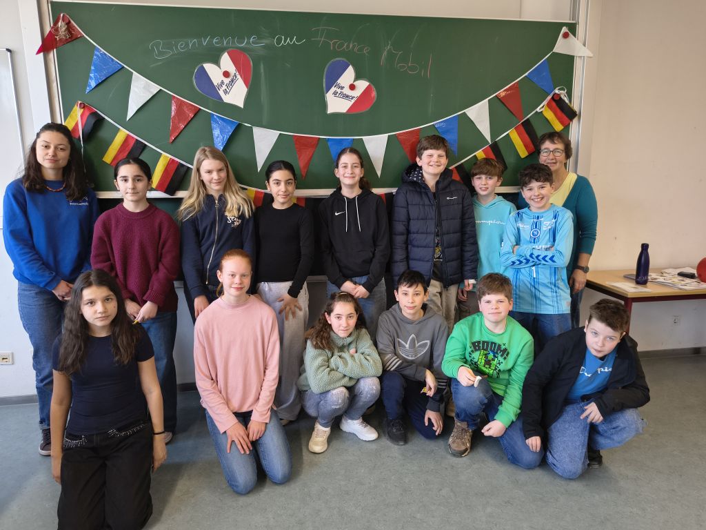 Junge Mitarbeiter/innen des Institut Français sind in ganz Deutschland mit ihrem kleinen Kulturmobil unterwegs. Sie haben den Auftrag, deutsche Schulen zu besuchen und Schüler/innen aller Altersgruppen spielerisch für Frankreich und die französische Sprache zu begeistern. Zum Einsatz kommen Spiele und Rätsel, aktuelle frankophone Musik und alles, was Spaß und neugierig macht! Das erlebten unsere Lateiner der Klassen 6 und 7, die dann in Klasse 8 das Profilfach Französisch als 3. Fremdsprache wählen können. Unsere diesjährige Referentin Pauline Nievollet präsentierte mit viel Schwung kleine Dialoge und deutsch-französische Memory- und Bewegungsspiele, die alle Schüler zum Mitmachen animierte.