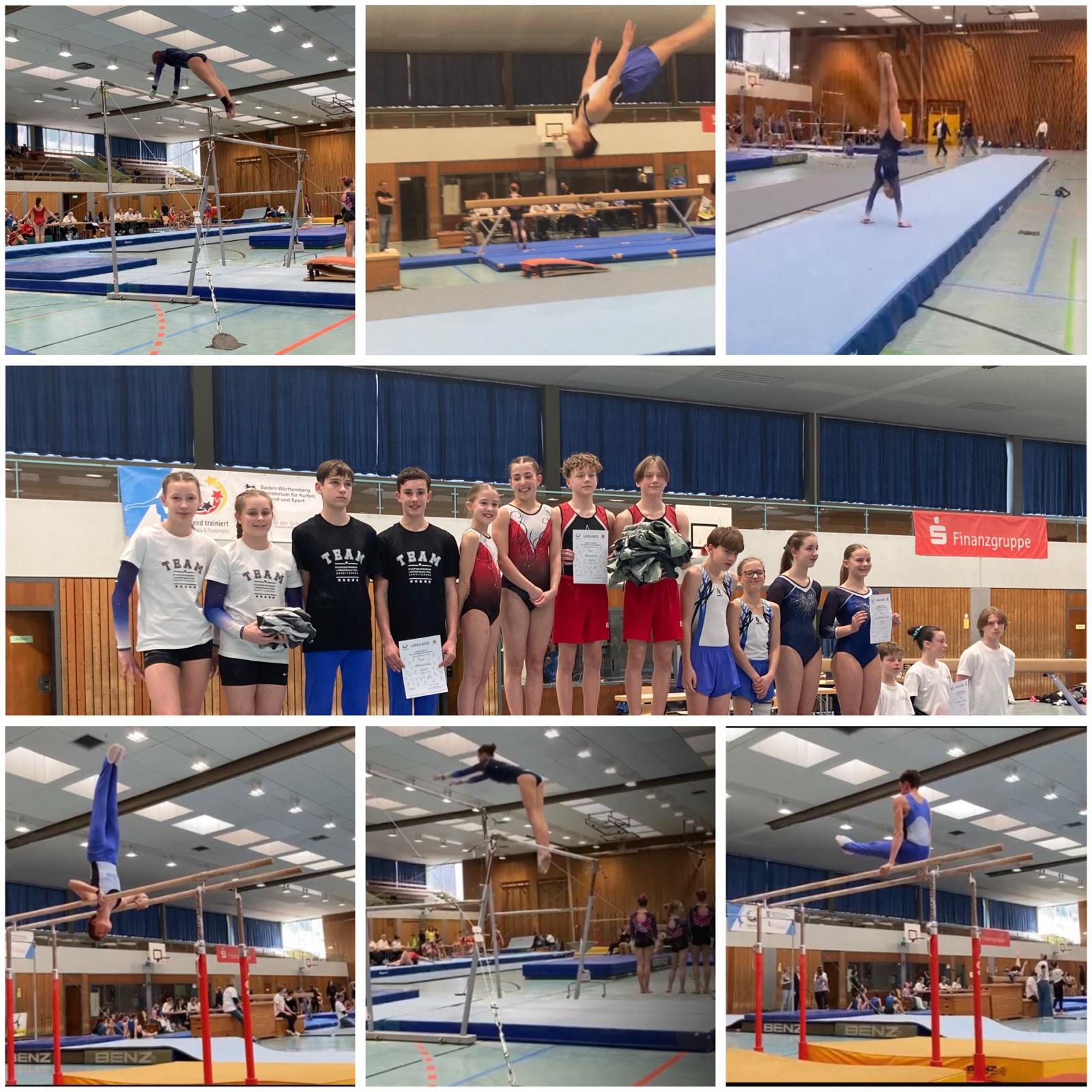 Im Landesfinale des U16 Mixed-Wettkampfes standen die Disziplinen Sprung, Boden und (Stufen-) Barren im Mittelpunkt. Unsere Mannschaft zeigte an den Geräten eindrucksvolle und sauber ausgeführte Übungen. Am Boden begeisterten die Turnerinnen und Turner durch elegante Choreografien mit Saltos und Schrauben, präzisen Bewegungsabläufen und Ausdrucksstärke. Am Barren waren es vor allem die technisch anspruchsvollen Elemente, die für hohe Wertungen sorgten, während wir am Sprung auf sichere Handstützüberschläge setzten, um Stürze zu vermeiden. Der Wettbewerb bot viele spannende Momente und ermöglichte wertvolle Erfahrungen im sportlichen Vergleich auf höchstem Niveau.