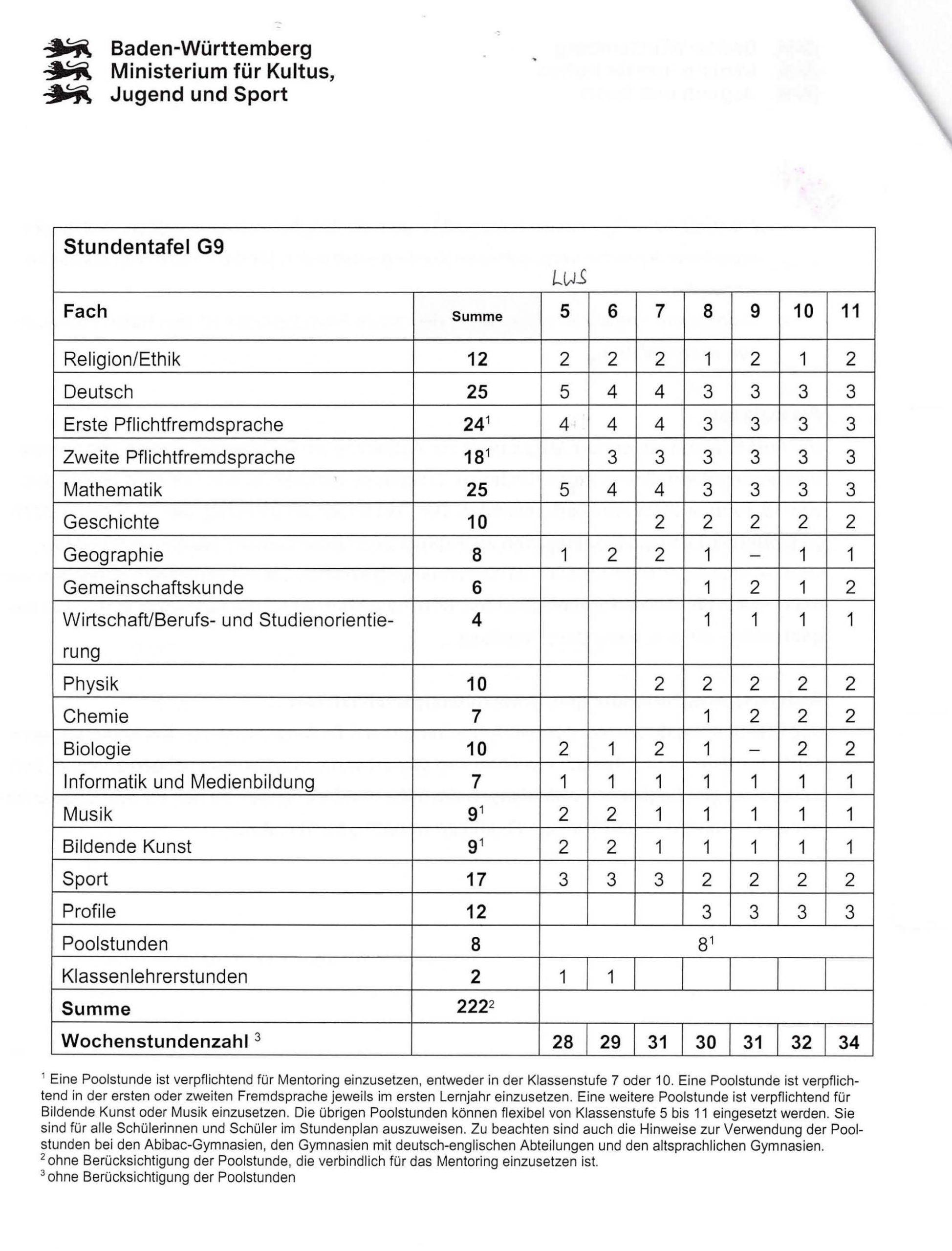 Kontingentstundentafel G8 Auf der Kontingentstundentafel finden Sie die Verteilung der Wochenstunden auf die einzelnen Fächer und Jahrgänge. Kontingentstundentafel G9neu Auf der Kontingentstundentafel finden Sie die Verteilung der Wochenstunden auf die einzelnen Fächer und Jahrgänge.